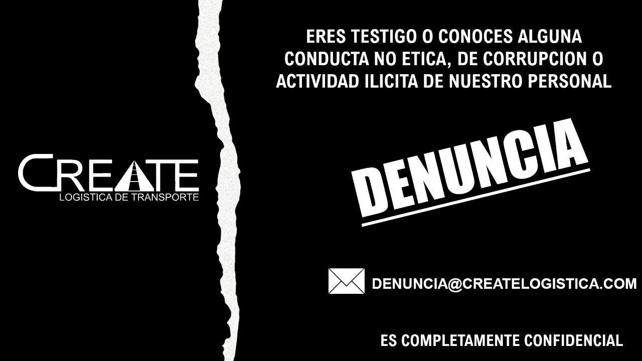 Denuncia Anónima Dirección Lorenzo Cavazos Tamez S/N Col. El Maguey. Allende N.L. 67350 Contacto Email: contacto@createlogistica.comTel: 81 2030 0643